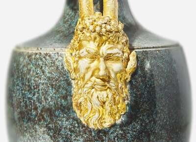 The White Terracotta body decorated in imitation of granite; mounted on a black basalt plinth