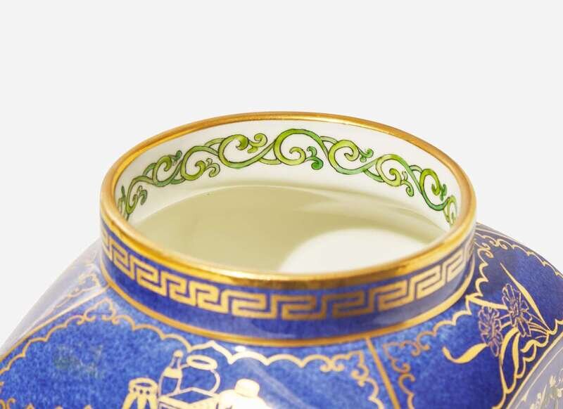 Decorated in gold and enamel on a powder blue ground by designer Mabel Tatton (1885-1973)