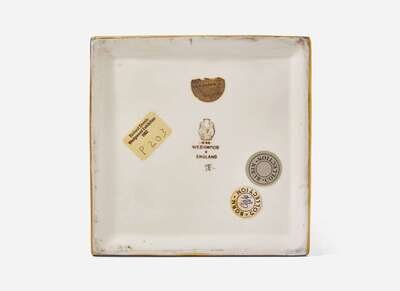 Printed Wedgwood Portland Vase mark, hand painted artist cipher, partial T. Goode & Co. retail label