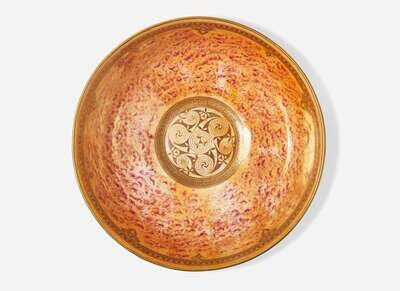 Decoration designed by Daisy Makeig-Jones (1881-1945) in the “Celtic Ornaments” pattern, against a matt black ground (exterior) and orange lustre (interior)