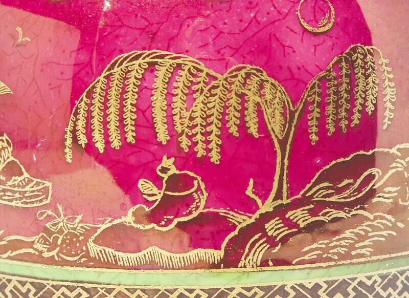 Decoration designed by Daisy Makeig-Jones (1881-1945) in the “Daventry" pattern on a ruby lustre ground; 2311 Malfrey Pot