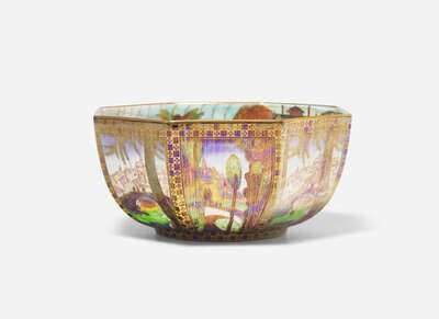A Wedgwood Black Fairyland Lustre "Dana" Pattern Octagonal Bowl, UK, 1920s
