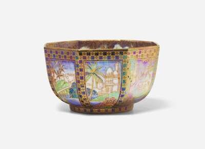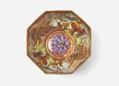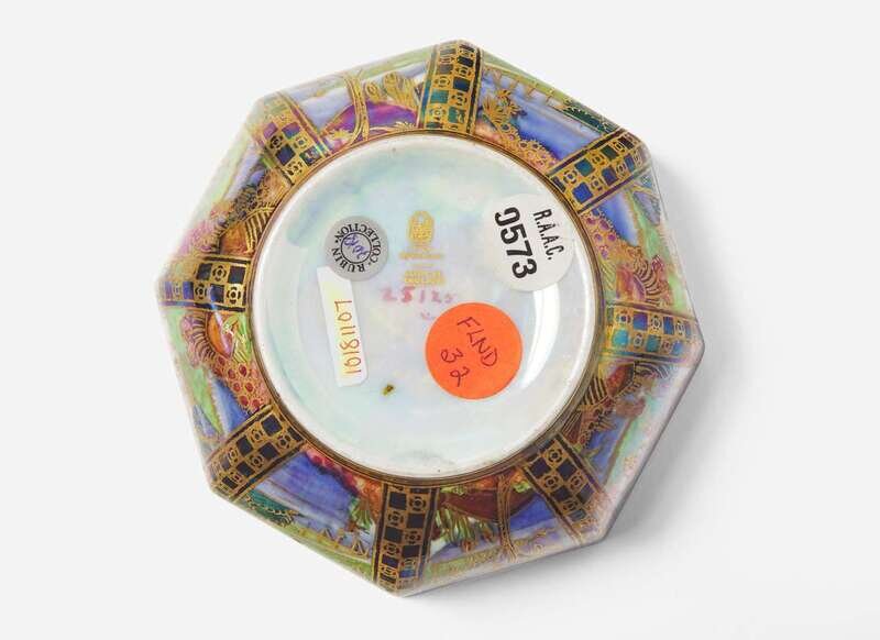 A Small Wedgwood Fairyland Lustre "Dana" Pattern Octagonal Bowl, UK, 1920s