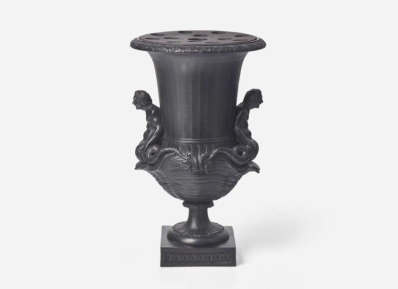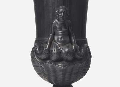 Shape No. 11 in the Wedgwood Shape Book, after a design by Edme Bouchardon, published by Gabriel Huquier in his Second Livres de Vases Inventes par Edme Bouchardon, but the Wedgwood example with mermen replacing mermaids