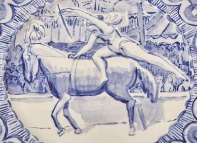 Decorated by Elaine Thérèse Lessore (1884-1945) with a circus performer on horseback in the ring