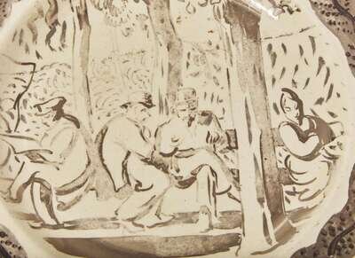 Decorated by Elaine Thérèse Lessore (1884-1945) with an image of people sitting on benches in a park
