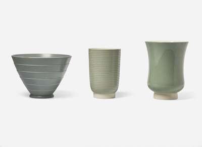 Three Wedgwood Keith Murray Designed Gray Glazed Vessels, UK, 1930s