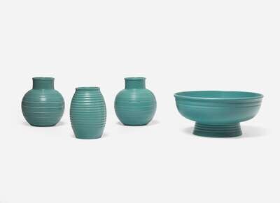 Four Wedgwood Keith Murray Designed Turquoise Vessels, UK, 1930s