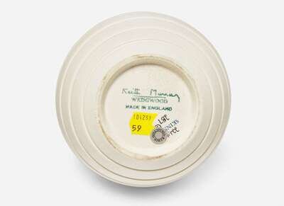Various printed Wedgwood backstamps, three with the full Keith Murray signature, one with the KM initial mark, on with “Dg 74” handwritten (likely a sample)