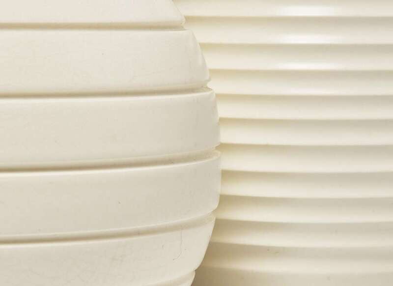 In various shapes, all in glazed in Moonstone matte white; designed by Keith Murray (1892-1981)