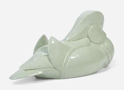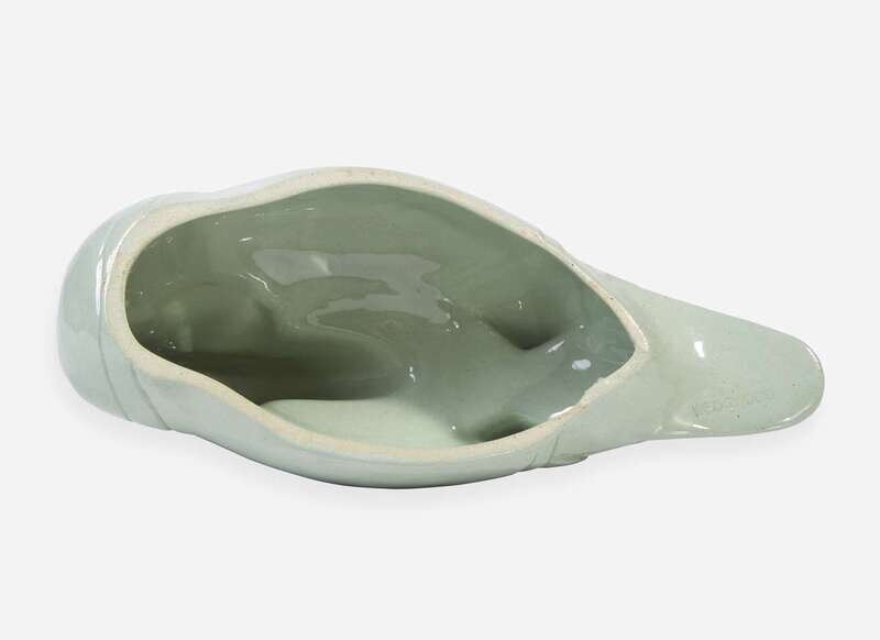 Modeled by Alan Best (b. 1910), this example in a dove gray glaze, the slip-cast blank apparently hand-finished