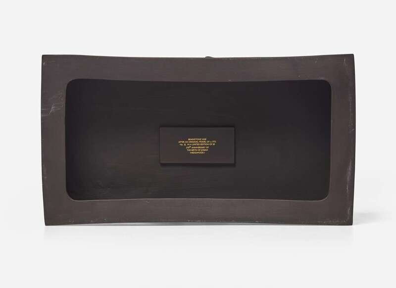 Impressed “WEDGWOOD” “MADE IN ENGLAND” “00” (date code for 2000), printed text in gold on applied tablet on bottom reading, AFTER AN ORIGINAL MODEL OF c. 1773 No. 8 IN A LIMITED EDITION OF 20 270th ANNIVERSARY OF THE BIRTH OF JOSIAH WEDGWOOD I"