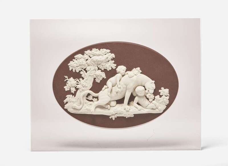 Engraved “WEDGWOOD” in lower right corner of Perspex frame; marks on reverse of plaque not visible