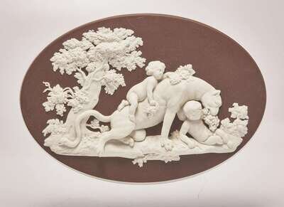 A Wedgwood Black Jasperware "Bacchanalian Boys and Panther" Plaque, UK, 2008