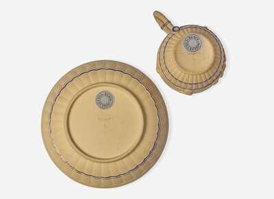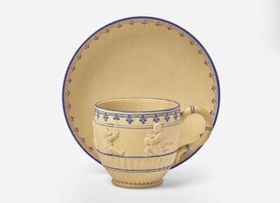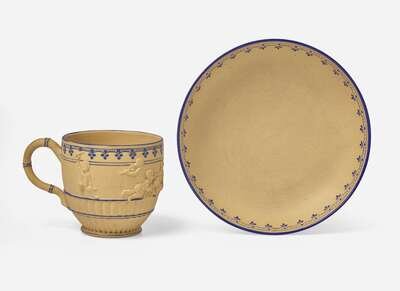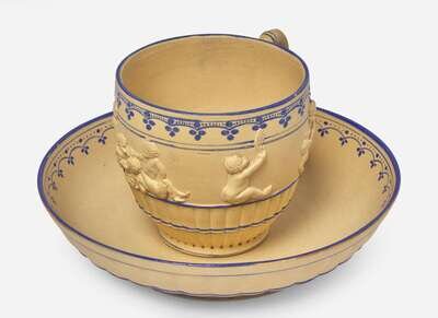 A Wedgwood Encaustic Decorated Caneware "Bacchanalian Boys" Cup and Saucer, UK, circa 1790