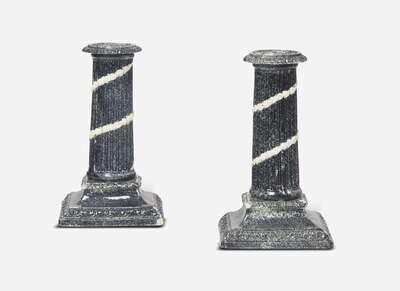 A Pair of Neale & Co. Variegated Ware Candlesticks, UK, 1780s