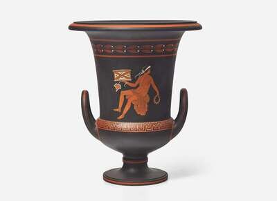 A Wedgwood Encaustic Decorated Black Basalt Handled Vase, UK, circa 1800