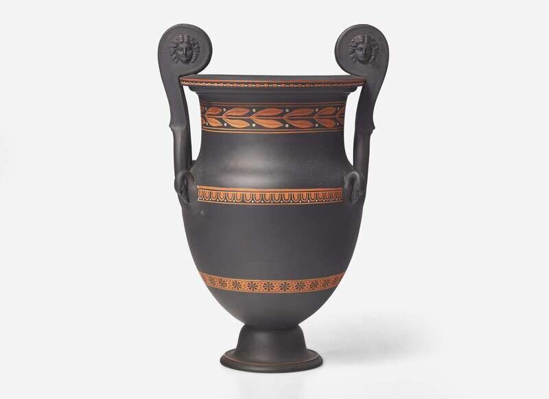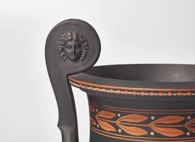 A Wedgwood Black Basalt Encaustic Decorated Handled Vase, UK, circa 1800