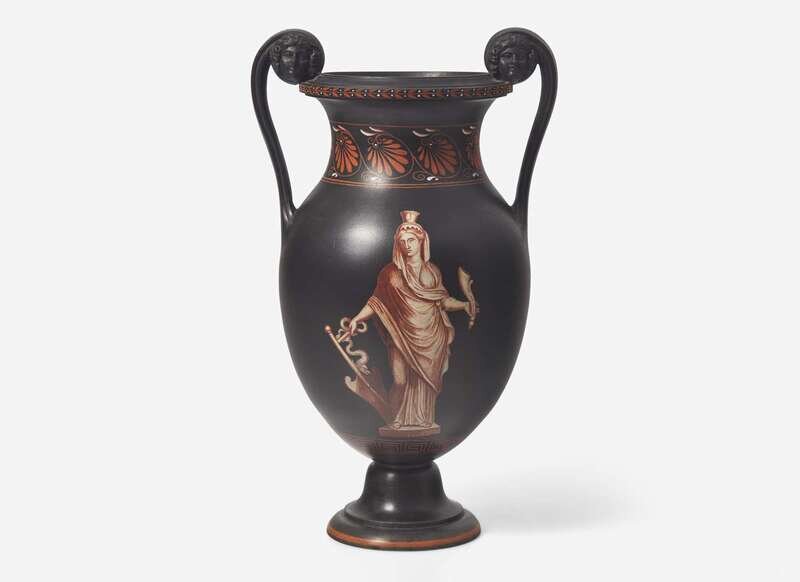 The form derived from an Apulian krater, decorated with an image of the goddess Cybele en grisaille