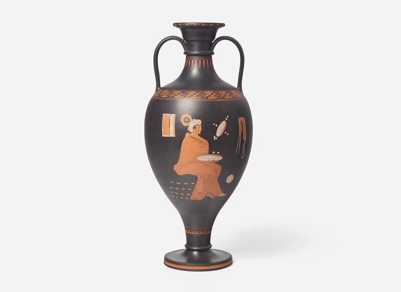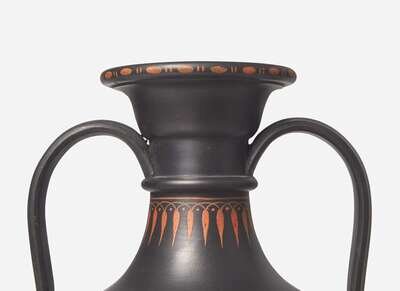 A Large Wedgwood Encaustic Decorated Black Basalt Handled Vase, UK, circa 1800