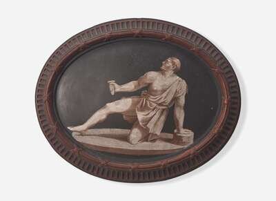 A Wedgwood & Bentley Encaustic Decorated Self-Framed Black Basalt Plaque, UK, 1770s