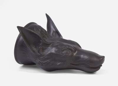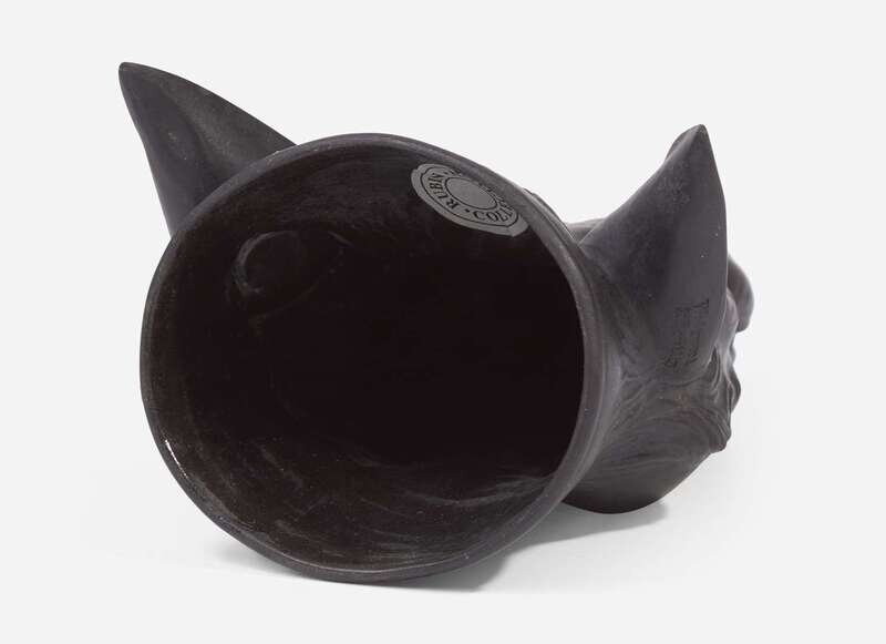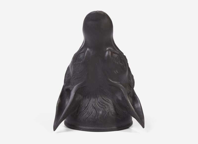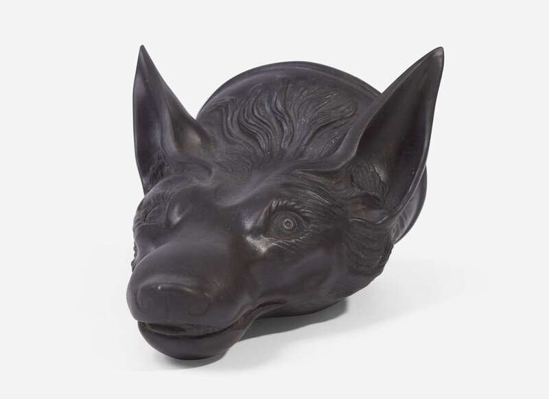 A Wedgwood & Bentley Black Basalt Fox Head Form Stirrup Cup, UK, 1770s