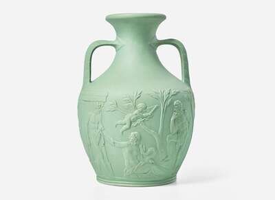 A Wedgwood Solid Green Stoneware Portland Vase, UK, mid-19th century