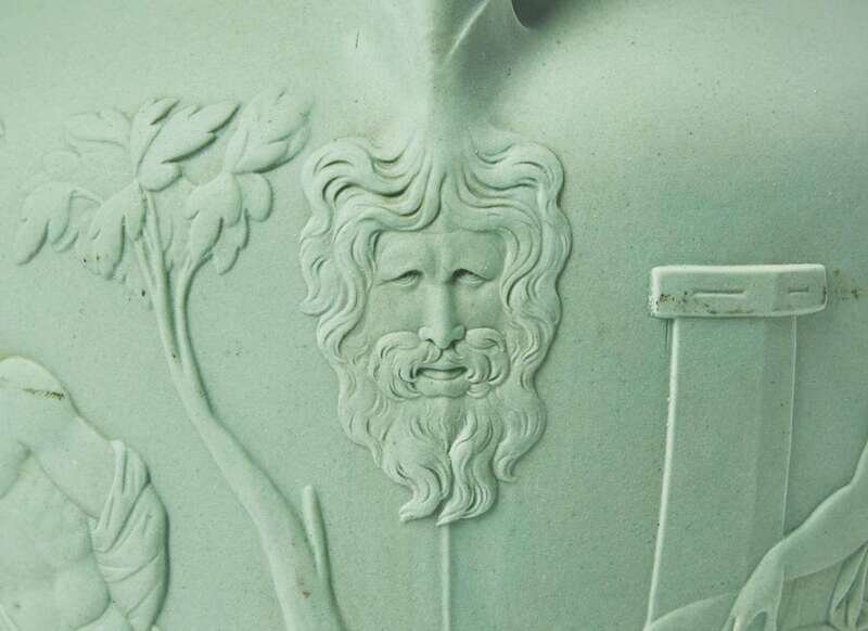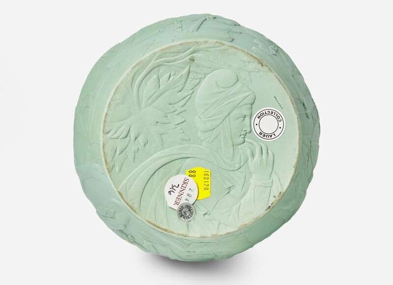 Cast in a solid green body, this example was produced in the middle of the 19th century, between the loss of the Jasper recipe and its rediscovery in the later 19th century
