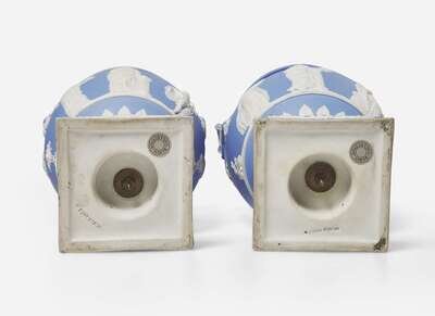 A Pair of Wedgwood Light Blue Dip Jasperware Vases, UK, late 19th century