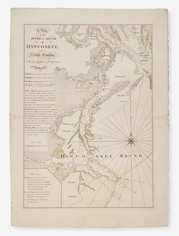 A rare and highly important first state of the finest sea chart of South Carolina's Hilton Head area, made towards the beginning of the Revolutionary War.