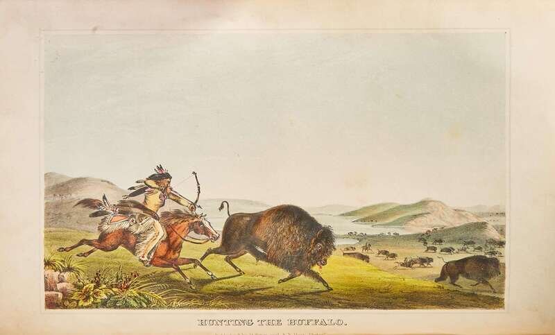 Philadelphia: Published by D. Rice & A.N. Hart, 1855. In three volumes. Third octavo edition. Large 8vo. Illustrated with 120 hand-colored lithographic plates by J.T. Bowen, largely after Charles Bird King. Publisher's full brown morocco, stamped in blind and in gilt, joints and extremities rubbed and lightly worn, front board of first volume split but holding, second volume starting, split in upper front joint of third volume, corners and spine ends of each volume lightly worn; all edges gilt; old repair to front and rear hinge in first volume; abrasion from removed ownership signature on front free endpaper of each volume; shallow dampstaining in top and fore-edge of title, prelims, and several leaves at front of first volume, scattered spotting and light toning to sheets in same volume; old repair to front hinge in second volume; old ownership signature in pencil on front free endpaper in second volume, light to moderate spotting and soiling to text and plates in same volume; spotting, soiling, and darkening to text and plates in third volume; repaired closed tear at bottom of contents leaf in third volume; Howes M-129; McGrath p. 206; Miles & Reese, America Pictured to the Life 53 (first octavo edition); Sabin 43411 (1854-56 edition); Servies 4028