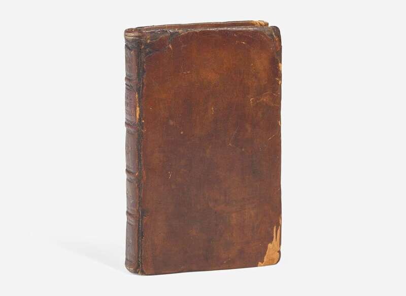 Hartford: Printed by Hudson and Goodwin, 1788. First edition. 12mo. 187 pp. Contemporary full brown calf, red morocco spine label, stamped in gilt, headcap renewed, joints sometime repaired, boards and extremities rubbed and moderately worn, scattered gouges to front and rear boards; all edges trimmed; illustrated book-plate of Hall Park McCullough on front paste-down; contemporary ownership signatures of C. Goodrich and C. Goodrich Jr., on front free endpaper; scattered spotting to text, marginalia in pencil on p. 184. Sabin 33804; Howes H-794; Evans 21160