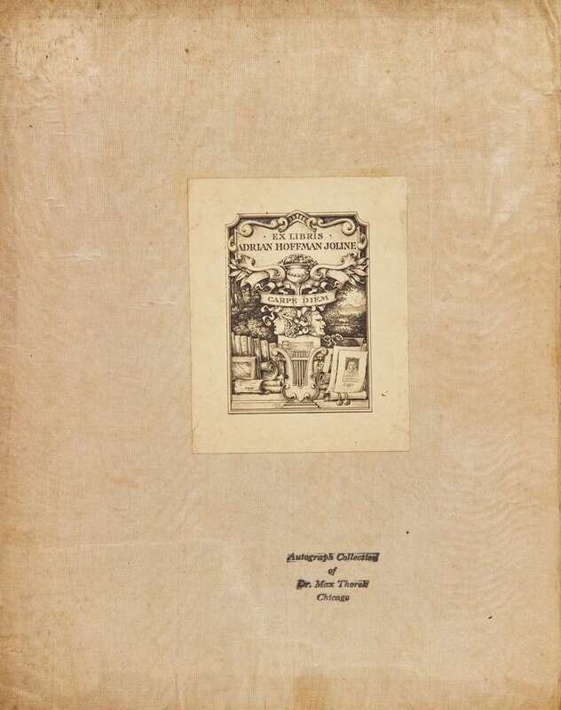 Paris, ca. 1814. Square 8vo, 9 1/2 x 7 5/8 in. (241 x 194 mm). (viii), viii, 50 pp. Autograph manuscript in black ink with gilt bordering, signed by Jean-Baptiste Durand, Baron d'Herville, and presented to King Louis XVIII. Original full green straight-grain morocco, elaborately stamped in gilt, with the French Royal arms in gilt at corners of front and rear boards, boards and extremities rubbed, corners worn, spine ends chipped; all edges gilt; white silk endpapers; book-plate of Adrian Hoffman Joline on front paste-down, ownership ink stamp of Dr. Max Thorek below same; scattered light soiling to text.