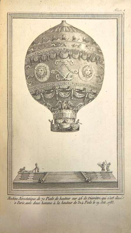 Second edition of the first contemporary chronicle of the first aerial voyage--"the first serious treatise on aerostation as a practical possibility." (PMM) In June of 1783, the Montgolfier brothers launched a balloon over Annonay. "This feat, however, was surpassed…in September when they successfully launched a balloon carrying a sheep, a cock and a duck, and even more sensationally in November when, after some tethered experiments, Pilâtre de Rozier, accompanied by the Marquis d'Arlandes, made the first aerial voyage in history. They ascended from the Château de la Muette in the Bois de Boulogne, sustained their flight for five-and-a-half miles across Paris and descended after twenty-five minutes on the outskirts of the city." (PMM). The experiment, which was witnessed by Benjamin Franklin, the Dauphin, amongst many others, marks the real beginning of the history of manned flight. This account by Faujas de Saint-Fond details both the event itself and the theoretical and practical science which went into making the flights a success.