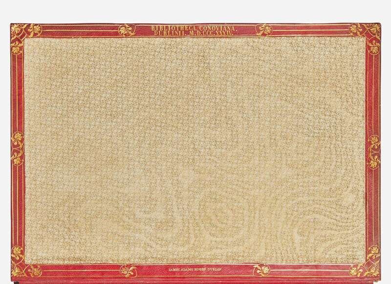 (Esslingen): Conrad Fyner, 1474. First edition. Folio. 103 (of 107) leaves; lacking the Table (as in some copies). Gothic type; 42 lines. Rubricated initials in red, seemingly in multiple hands. Full 19th-century crimson morocco, stamped in gilt; all edges gilt; patterned endpapers; by James Adams, Dublin; scattered soiling and dampstaining throughout text; old ink inscription at head of first leaf now largely erased; contemporary marginalia in red and in black. From the library of Frederick William Conway, with “Bibliotheca. Conoviana. Dublinii. M.D.CCC.XXXIV.” stamped in gilt on front front paste-down. ISTC it00236000; Goff T236; Hain 1397; GW M46296; Bod-Inc T-12; BMC II 513; Proctor 246