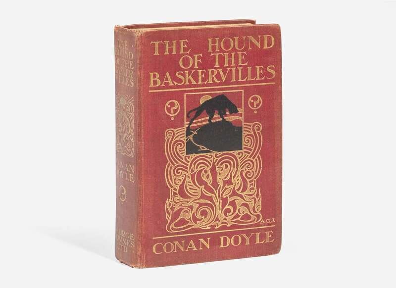 London: George Newnes, Limited, 1902. First edition. 8vo. (viii), 358, (1) pp. Illustrated with frontispiece and 15 plates by Sidney Paget. Publisher's red cloth, stamped in gilt with a design by Alfred Garth Jones, and with silhouette of a hound stamped in black on front board, cocked, spine faded, boards unevenly faded, corners and spine ends worn; all edges trimmed; scattered creasing to top corners; front hinge worn; small spotting at bottom of pp. 155-160; small tape repair on verso of plate facing p. 322. Green & Gibson A26
