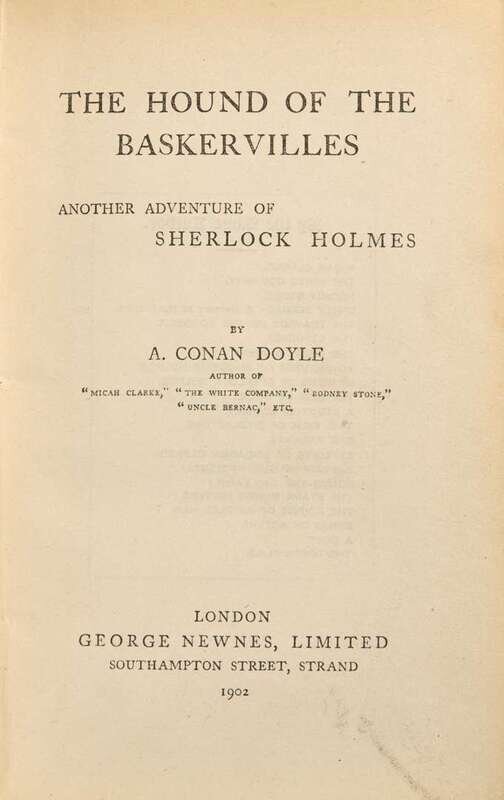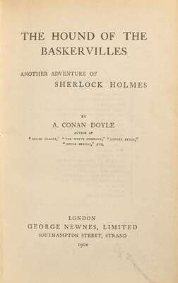 First edition of Doyle's most famous Sherlock Holmes novel. First serialized in The Strand Magazine from August, 1901-April, 1902, it was the first reappearance of the Holmes character after his apparent death in The Final Problem, in 1893.