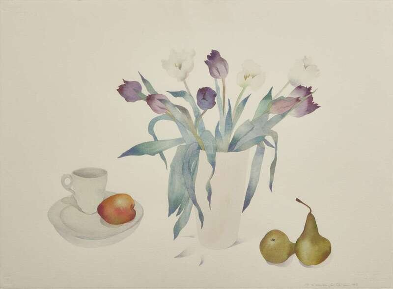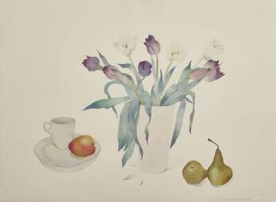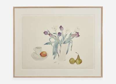 Susan Headley Van Campen (American, b. 1951), Fruit and Purple Tulips
