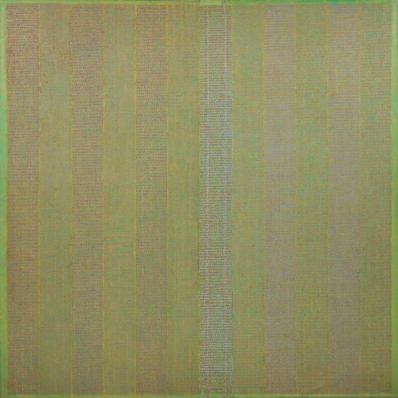 Signed, titled and dated 1973 to top stretcher, oil on linen.