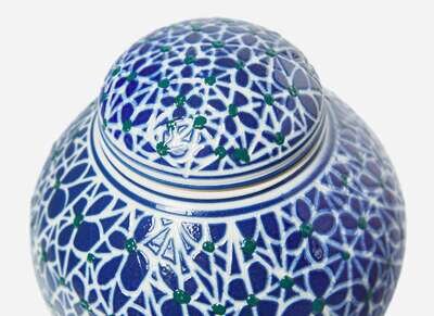 Carved, glazed, and enameled porcelain