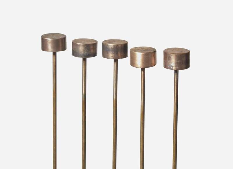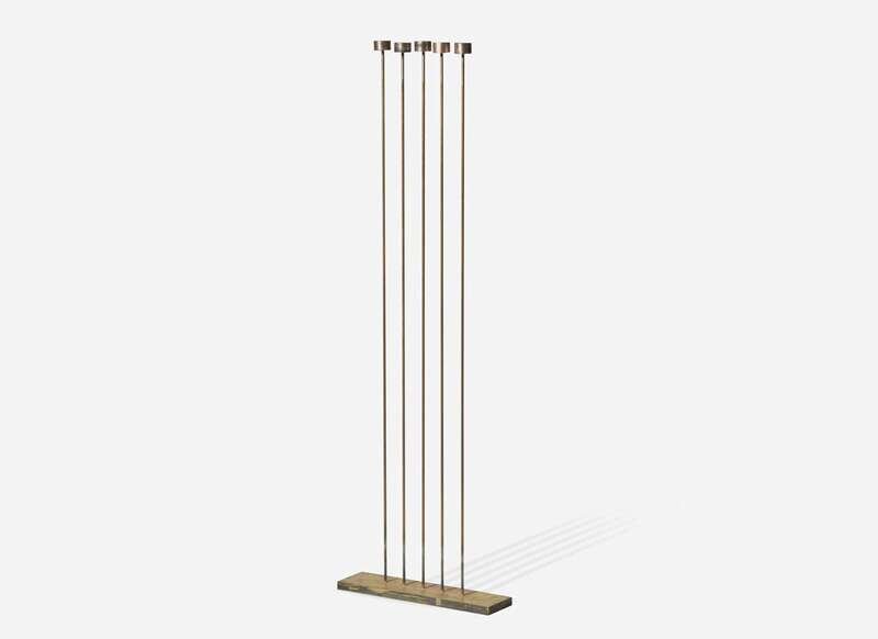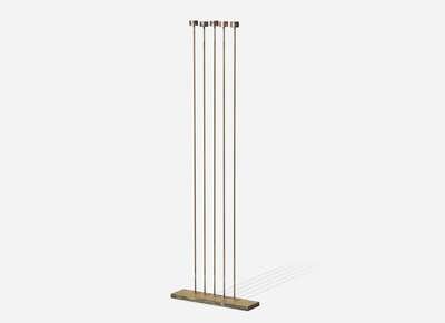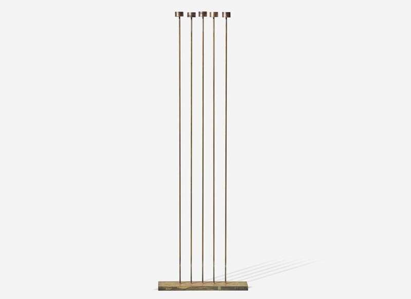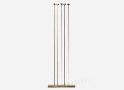Consisting of a single row of five beryllium copper rods silvered to a brass base, each rod with bronze cattails silvered to tops