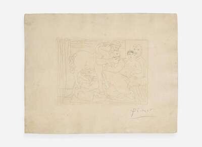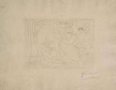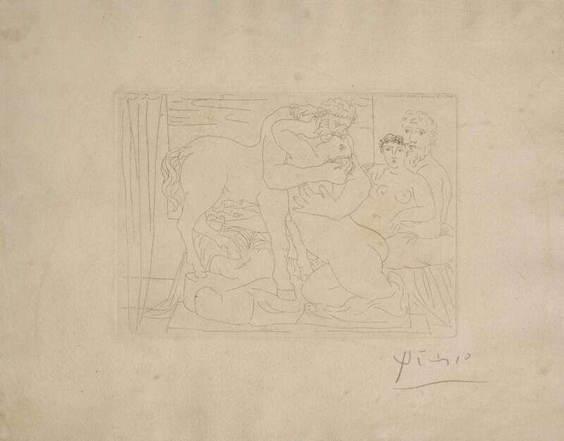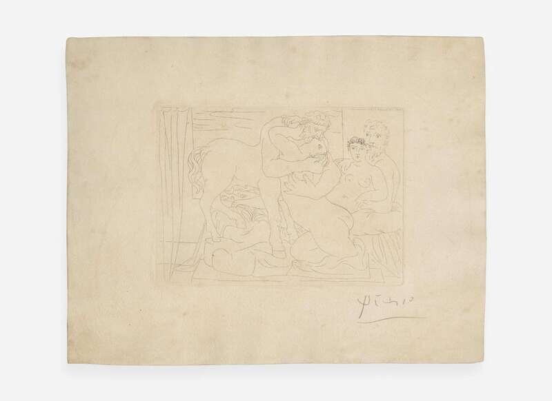 Pablo Picasso (Spanish, 1881-1973) Le Repos du Sculpteur devant un Centaure et une Femme, from La Suite Vollard