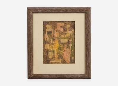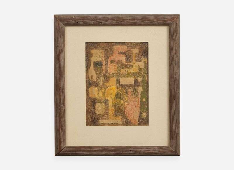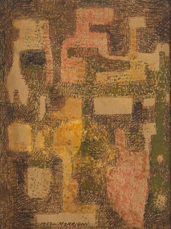 Signed and dated 1953 bottom center, pen and mixed media on paper.