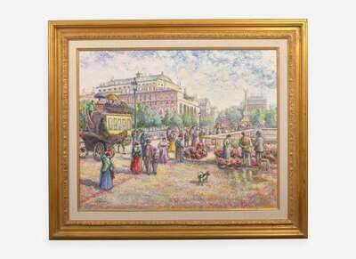 Signed bottom left, signed again, located “Paris” and titled verso, oil on canvas.