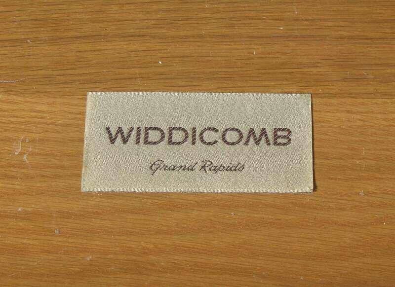With fabric manufacturer's label to one drawer interior: "Widdicomb, Grand Rapids"