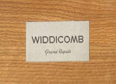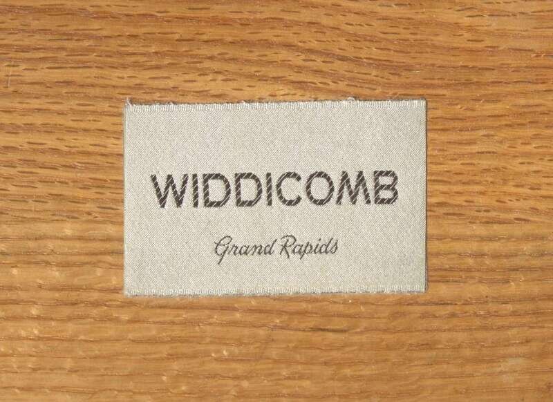 With fabric manufacturer's label to both drawer interiors: "Widdicomb, Grand Rapids"