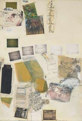 Signed and dated ‘Rauschenberg 70’ bottom center left; also titled ‘Letter Head II’ bottom center right, solvent transfer with Polaroid photographs, lenticular images, paper, printed reproductions, gouache, tape and graphite on paper