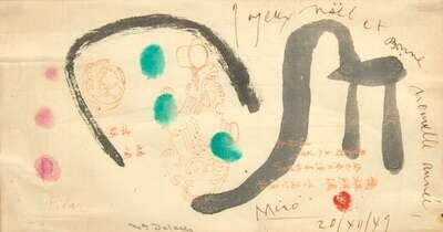 Joan Miró (Spanish, 1893-1983) - Joyeux Noël, Vœux de Joan, Pilar et Dolorès Miró