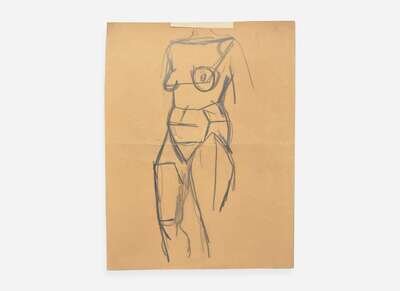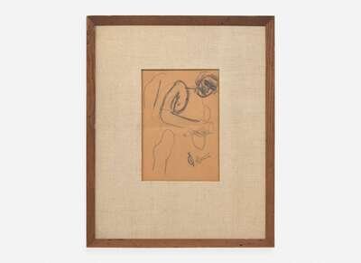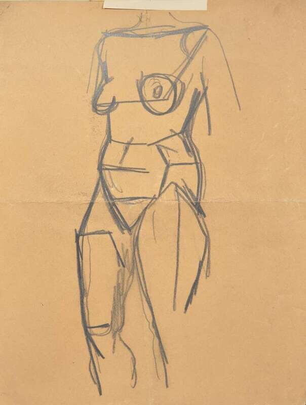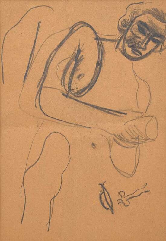Inscribed verso ‘Self Portrait/from a photo of 1911/painting 1926-29/Whitney Museum (artist and his mother)', pencil on paper