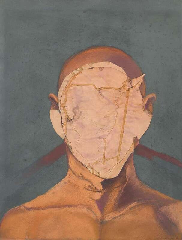 Signed and dated ‘N Grossman ‘76’ bottom right, pastel and mixed media collage on paper